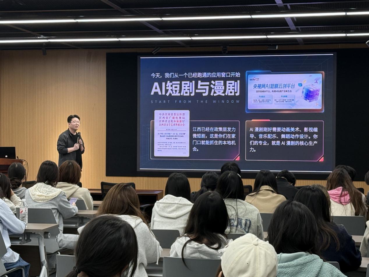 4月24日,南昌大学第七期香樟双创讲坛举办,校友李业飞分享AI短剧创作,阐释人机协同创作理念,助力学子把握文创创业新机遇。